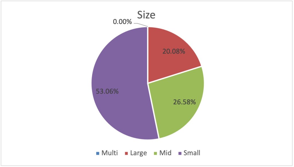 For those readers who prefer graphics, this is how overall asset allocation breaks down by size and strategy.