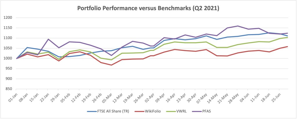 The most important thing that has happened during the quarter has been the birth of my first grandchild, Harvey who has taken up much more of my time than investing. I also opened a Junior ISA for him and put it all into the Vanguard World ETF (VWRL), so I will forgive him for beating me this quarter (beginners’ luck!) but I shall be gunning for him in Q3.