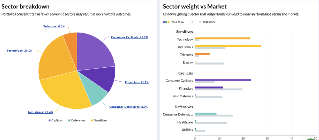 The remainder of the portfolio (~80%) consists of 16 individual small and midcap stocks that I plan to hold for the long-term (while my investment thesis remains valid or unless a more compelling proposition comes along). While these are all UK listed shares many of them generate the majority of their earnings overseas, offsetting what might initially seem like excessive home bias, although I accept that fund flows into UK equities are a significant factor. Beyond my own due diligence, idiosyncratic risk is managed via diversification, albeit significantly different allocation from the UK market overall.