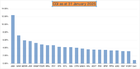 I exited Bloomsbury Publishing (BMY) on news that they had renegotiated their distribution deal with Amazon having learnt a day prior that the deal had been terminated by the latter. In truth, it was a move I had been contemplating anyway as I had made a near 100% return over 4 years and felt the company was overly dependent on a couple of star authors rather than being a genuine compounder. It has been replaced in my portfolio by HG Capital Trust (HGT) which is a private equity vehicle that has an entire portfolio of technology compounders. I also topped up JP Morgan American (JAM) on the day the market had a wobble based on Chinese based DeepSeek AI.