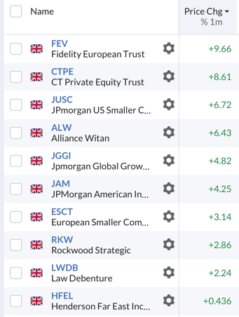 While there was a clean sweep of positivity from The Compounding Machine with Fidelity European (FEV) and CT Private Equity (CTPE) leading the way.
