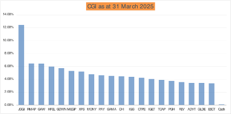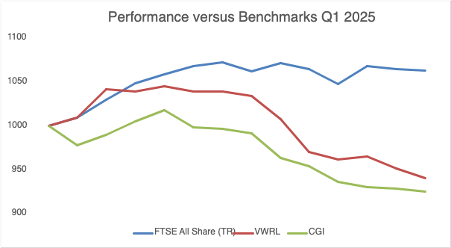 A theme that I have noticed during the quarter is that a lot of companies have been delivering good results for 2024 but subsequently forecasts are being downgraded for 2025/26. From my purview this seems to be among both UK and US companies. I imagine this is caution on behalf of both companies and the analyst community on, among other things, the impact of America’s tariffs and trade policies. It might go some way towards explaining the weak first quarter we have just experienced but whether this means the bad news is now fully priced in remains to be seen.