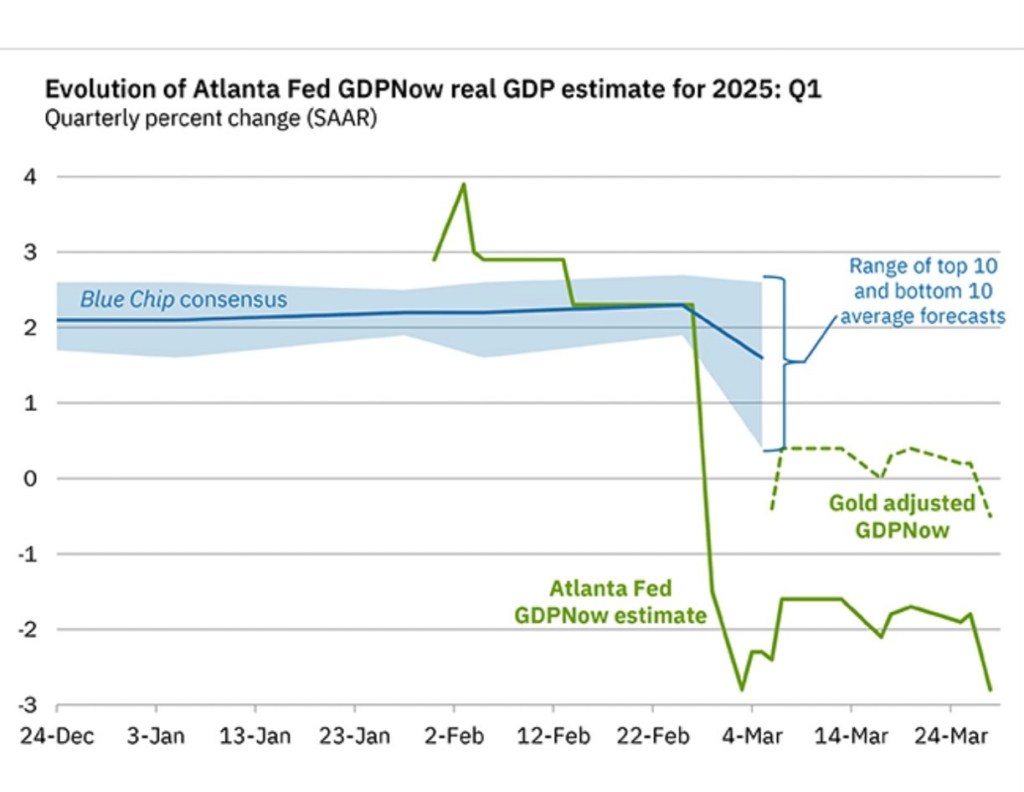 In my annual review I wrote that “Trump 2.0 brings unpredictability and volatility.” While that might be true, things are unfolding in ways many people, myself included, had not imagined. From a distance, I thought the whole basis of his election campaign was to Make America Great Again (MAGA). Early indications are that the opposite might be happening, as the chart below from the Atlanta Fed GDPNow suggests: