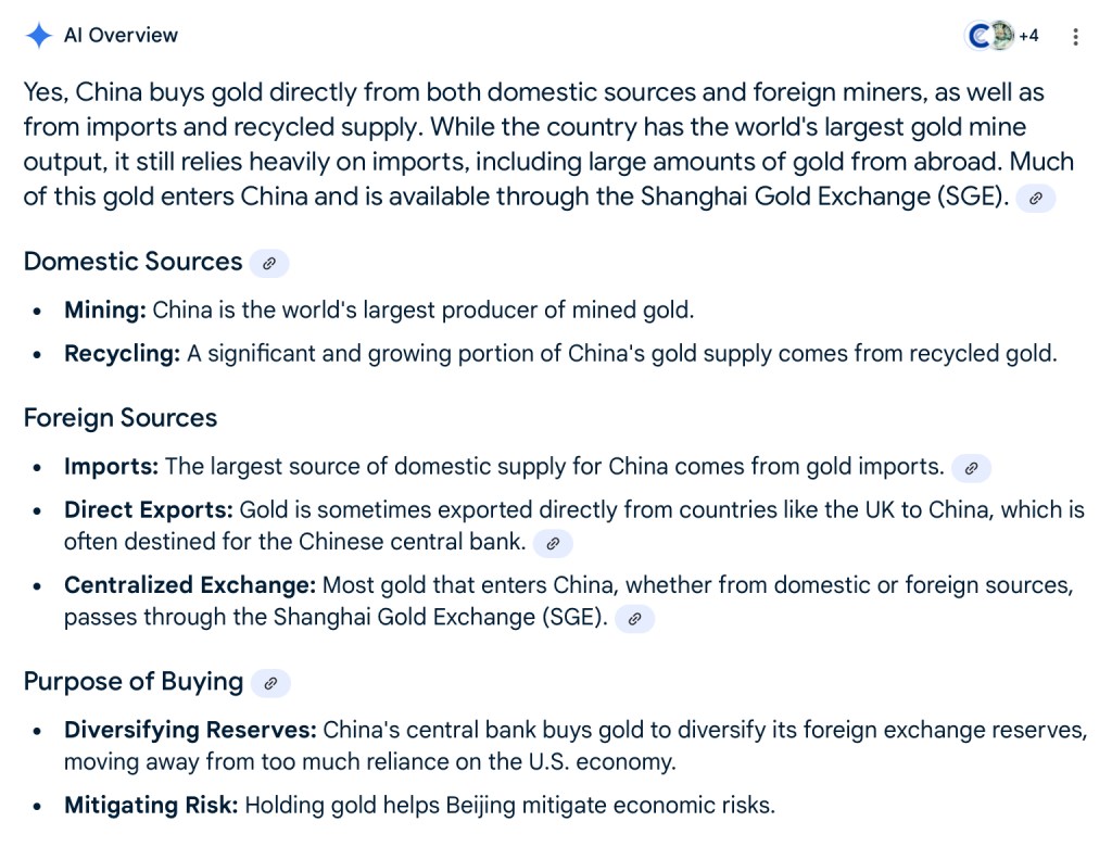 It is also worth noting that China doesn’t just buy gold on the open market via exchanges but also directly from miners, both foreign and domestic.