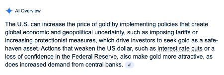 All that glitters is not just gold, it is a new global monetary system or more likely, two competing systems, West and East. And I am in little doubt that they will both need to be underpinned by gold in one way or another. But don’t take my word for it, Stephen Miran (Chair of the Council of Economic Advisers to the U.S. Government and the latest member of the FOMC after replacing Adriana Kugler) published A User’s Guide to Restructuring the Global Trading System in November 2024. The playbook has been hiding in plain sight.