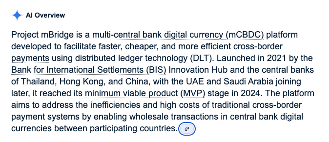 So, it seems that central banks, led by the BRICS countries and most notably China, have been converting their US Dollar Treasuries into Gold. These BRICS countries, along with other non-BRICS countries across Asia and the Middle East have launched their own settlement system that bypasses the US led SWIFT. It is called mBridge. It is blockchain-based and real-time payments are supported using Central Bank Digital Currencies (CBDCs).