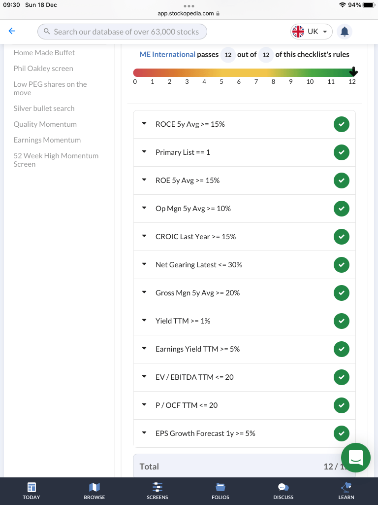 My circle of competence, such that it is, revolves around investing in UK small/mid cap companies where I try to buy Quality at a Reasonable Price (QARP). I have developed a QARP checklist to help me screen for suitable candidates and to monitor the progress of existing holdings.